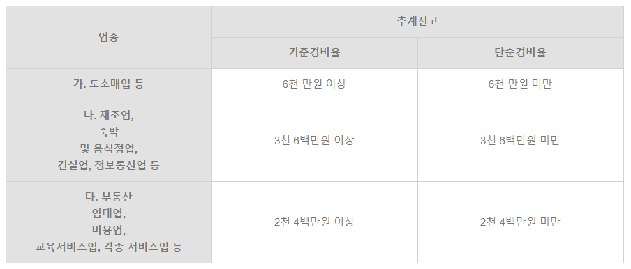 ※ 기준 경비율로 세금을 신고 시 단순 경비율에