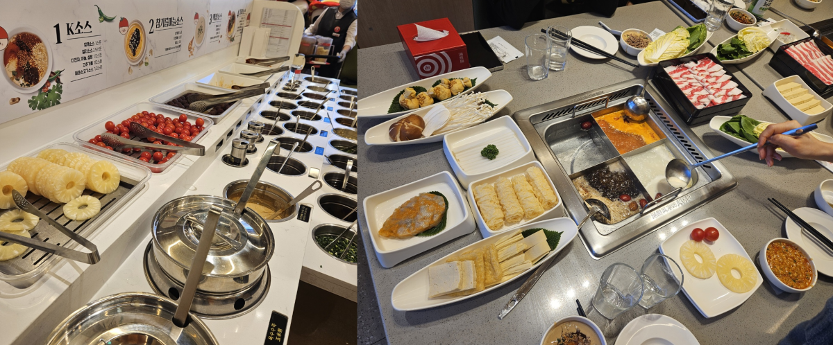 두 테이블에서 각각 4종류의 탕을 고르고 먹고 싶은 재료들을 다양하게 시켜 나누어 먹었답니다.